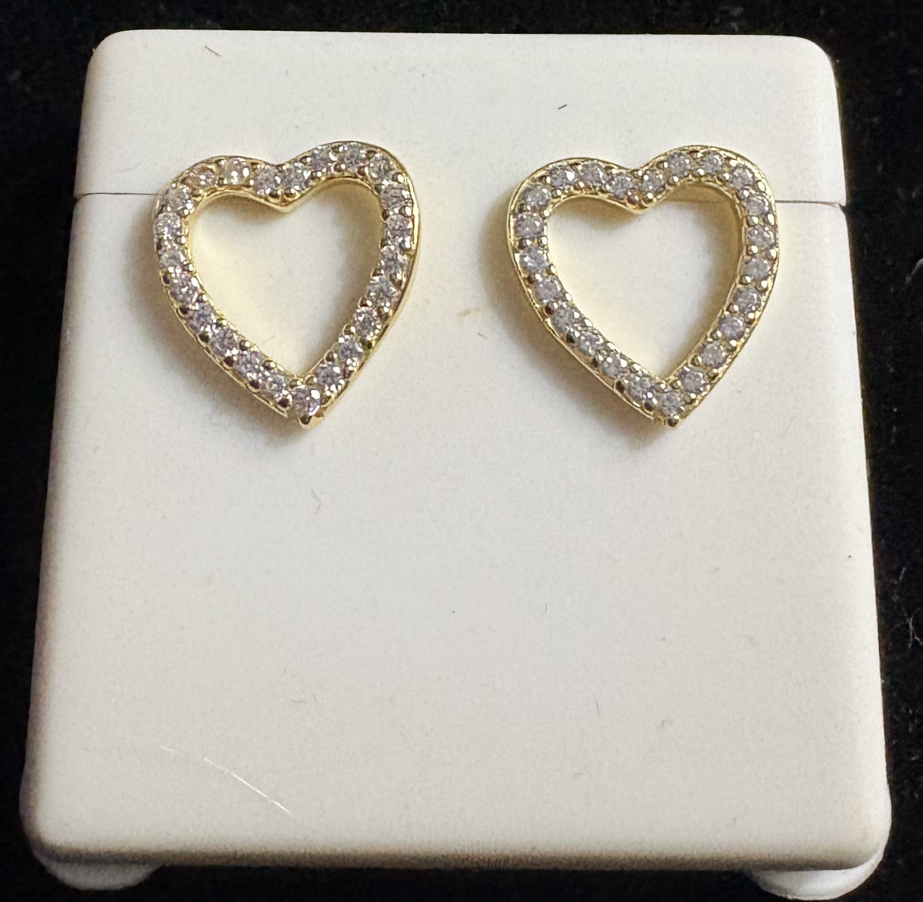 .925 Sterling Silver Gold plated heart shape earrings with CZ stones and Bubble backs 1 cm NWT (J38)