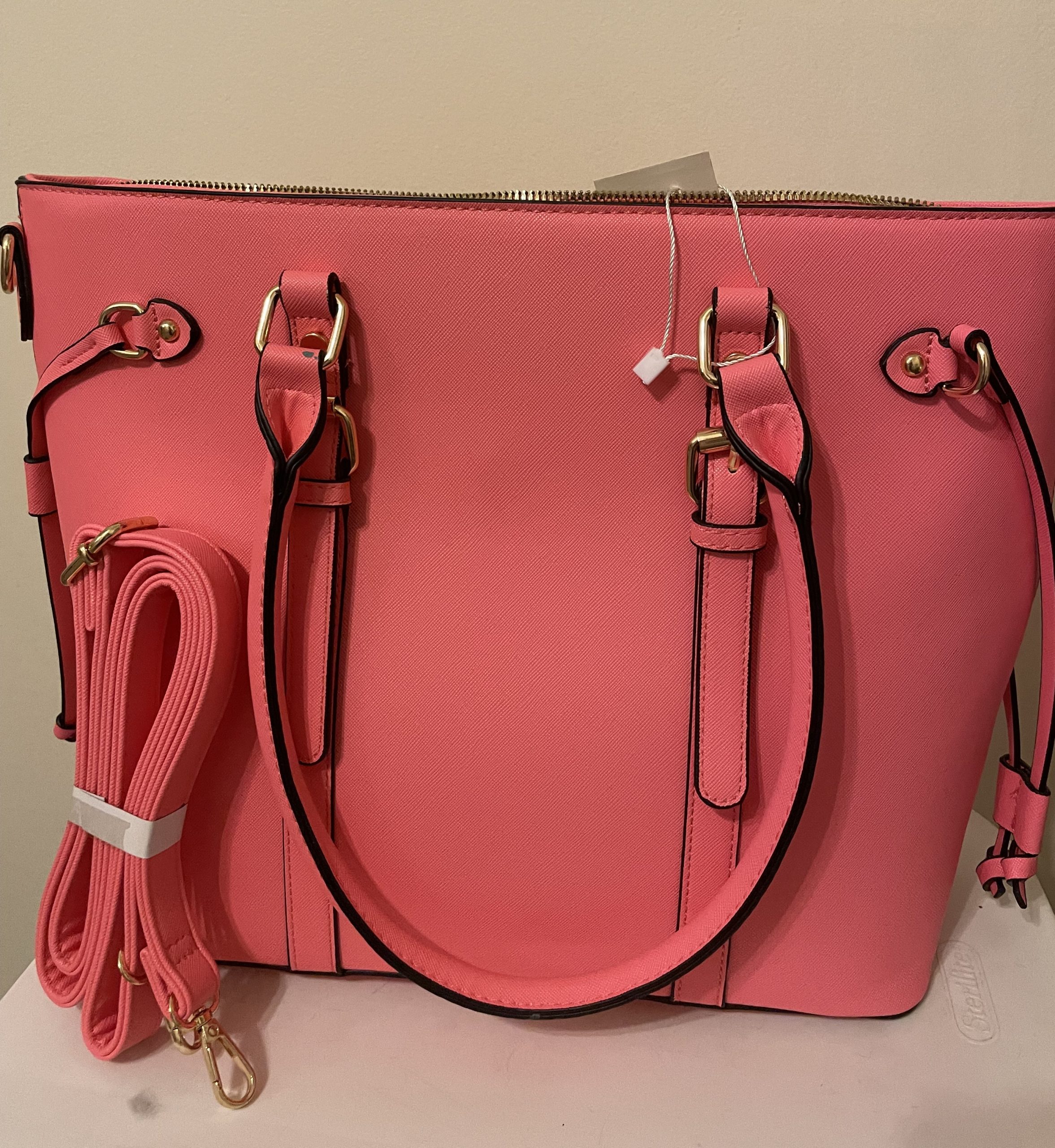 Classic PU Leather Hot Pink Multi Function Handbag (small purse sold separately) -NWT. 15" X 11" (P10)