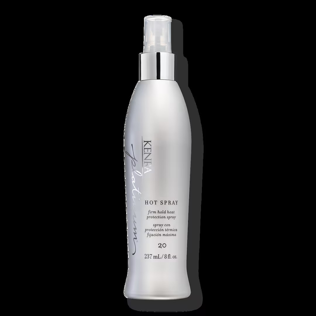 Kenra Platinum Hot Spray 8 oz - Protect & Finish is the ultimate thermal protection with long-lasting firm hold. Uniquely formulated to prevent thermal damage while premitting a clean release from styling tools and harmful UV rays.