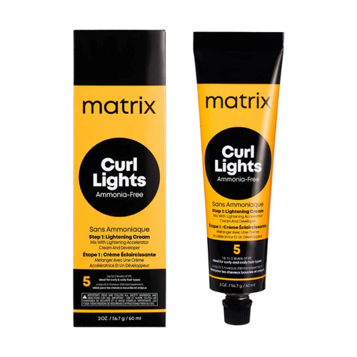 Matrix Curl Lights Step 1 Lightening Cream 2oz Curl Pattern Preserving Lightening System with creamy texture that applies easily, looks + feels caring on curls. Formula is infused with beeswax and ceramides.